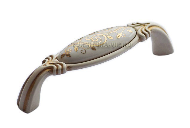 Ручка скоба WMN.68.01.M1.096.V5, материал Замак Керамика, отделка Золото Слоновая кость Керамика Золотая патина, 114*26*31 мм